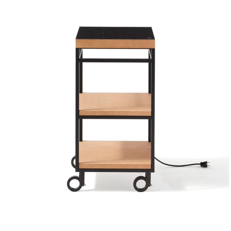 Comodo được ví như một căn bếp mini có kèm bánh xe, đây là một thiết kế tuyệt đỉnh nhờ vào khung phức hợp kim loại nâng đỡ bếp từ 2 vùng nấu, khung treo vật dụng và hai kệ gỗ được làm từ gỗ tần bì và ngoài ra, bếp từ Comodo còn có phiên bản lớn hơn, size XL.