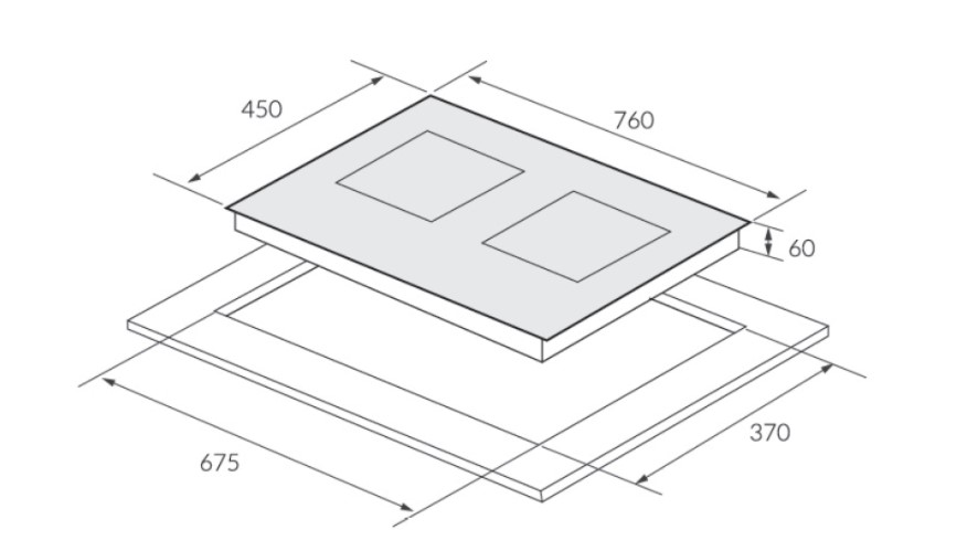 – Kích thước khoét đá: 675R x 370S mm