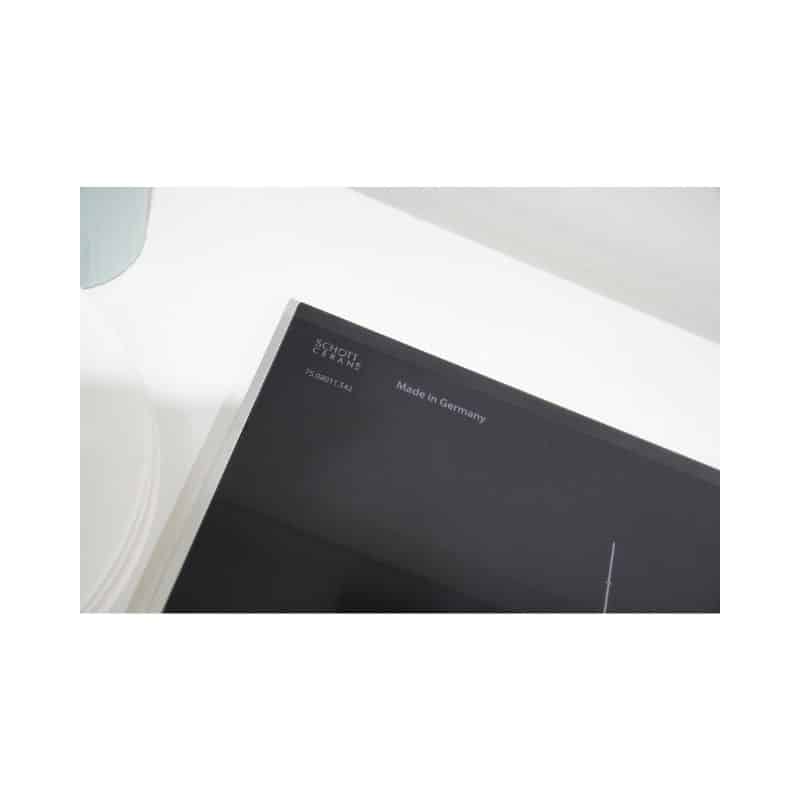 - Mặt kính Schott Ceran (made in Germany) phủ Saphire bo viền nhôm hai cạnh có khả năng chịu lực, chịu nhiệt, chống trầy xước, va đập.