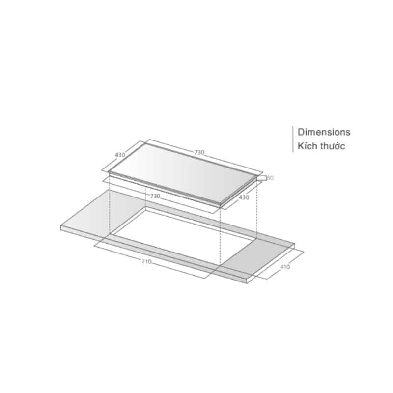 - Kích thước cắt đá: 685×385 mm